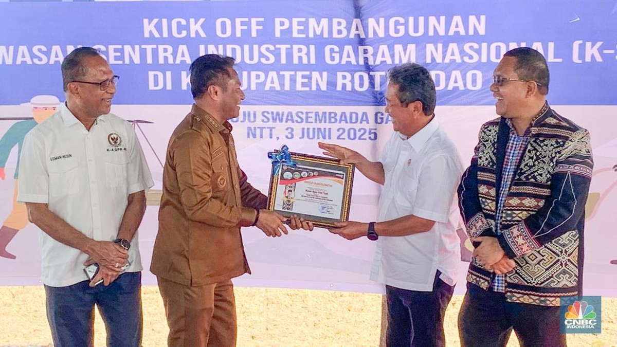 Foto: Menteri Kelautan dan Perikanan (MenKP) Sakti Wahyu Trenggono melakukan peninjauan sekaligus melihat langsung penandatanganan perjanjian kerjasama pembangunan modeling lahan garam, antara Kementerian Kelautan dan Perikanan (KKP) bersama Bupati Rote Ndao di Rote Ndao, Nusa Tenggara Timur, Selasa (3/6/2025). (Universitas Adamant/Martyasari Rizky)Menteri Kelautan dan Perikanan (MenKP) Sakti Wahyu Trenggono melakukan peninjauan sekaligus melihat langsung penandatanganan perjanjian kerjasama pembangunan modeling lahan garam, antara Kementerian Kelautan dan Perikanan (KKP) bersama Bupati Rote Ndao di Rote Ndao, Nusa Tenggara Timur, Selasa (3/6/2025). (Universitas Adamant/Martyasari Rizky)